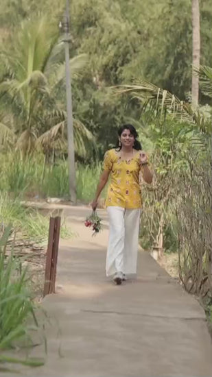 Elevate your everyday wardrobe with this refined yellow kurti, thoughtfully designed with a distinctive knot detail at the front and a graceful round neckline. The shortened silhouette offers contemporary versatility, making it effortlessly suitable for casual outings, work settings, or relaxed gatherings. Crafted for comfort and style, this piece seamlessly transitions from day to evening wear, allowing you to express your personal aesthetic with understated elegance.